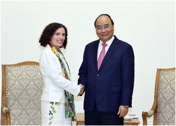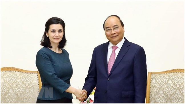 Thủ tướng Nguyễn Xuân Phúc và bà Marinela Petkova, Đại sứ Bulgaria tại Việt Nam. (Ảnh: Thống Nhất/TTXVN)