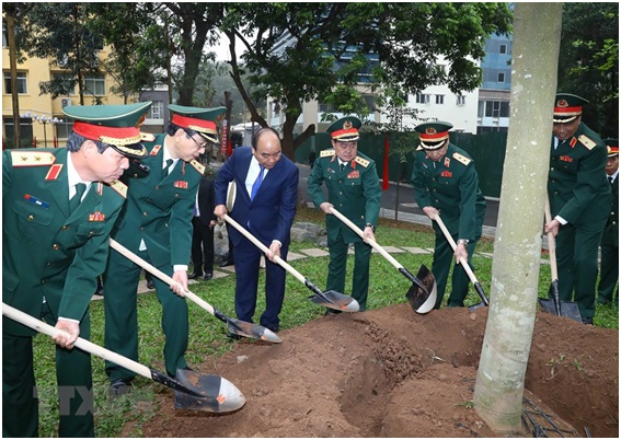 Thủ tướng Nguyễn Xuân Phúc trồng cây lưu niệm tại Học viện Quân Y. (Ảnh: Thống Nhất/TTXVN)