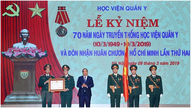 Sáng 9/3, Thủ tướng Chính phủ Nguyễn Xuân Phúc đã tới dự Lễ đón nhận Huân chương Hồ Chí Minh lần thứ 2 và chúc mừng tập thể y, bác sỹ Học viện Quân y nhân kỷ niệm 70 năm Ngày thành lập (10/3/1949-10/3/2019).