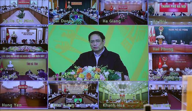 Hội nghị trực tuyến từ Chính phủ đến các bộ, ngành và các tỉnh, thành phố trực thuộc trung ương. Ảnh: Dương Giang/TTXVN
