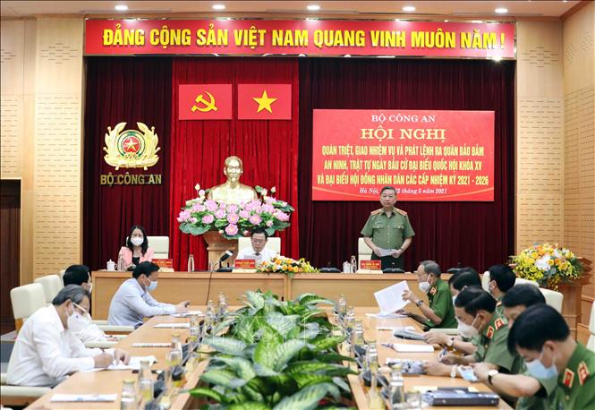 Tại hội nghị, Bộ trưởng Bộ Công an phát lệnh ra quân bảo đảm an ninh, trật tự Ngày bầu cử trong toàn lực lượng Công an nhân dân.
