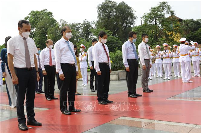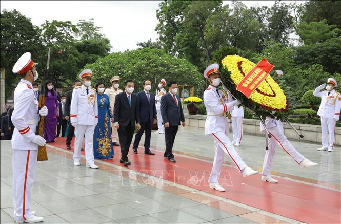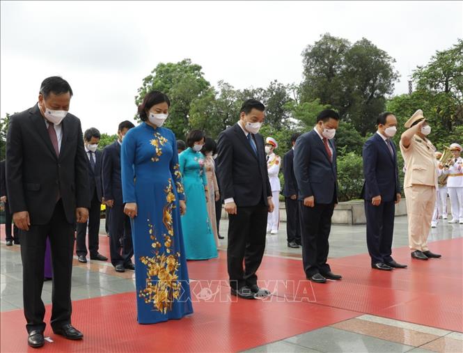 Đoàn đại biểu thành phố Hà Nội tưởng niệm Chủ tịch Hồ Chí Minh. Ảnh: Dương Giang/TTXVN
