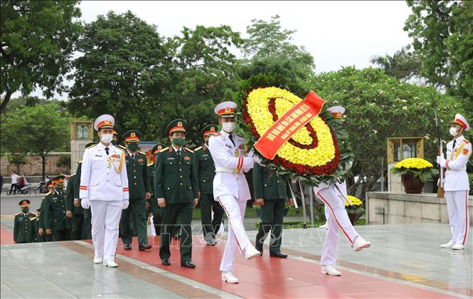 Đoàn đại biểu Quân ủy Trung ương và Bộ Quốc phòng dâng hoa tưởng niệm các Anh hùng liệt sỹ. Ảnh: Văn Điệp/TTXVN
