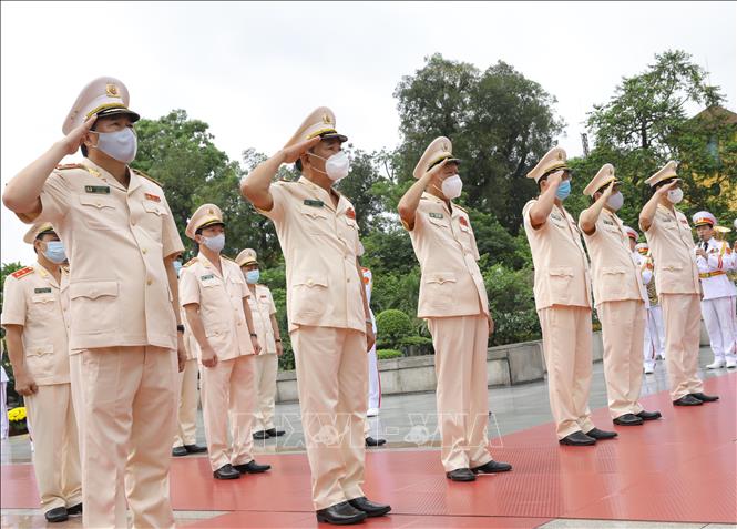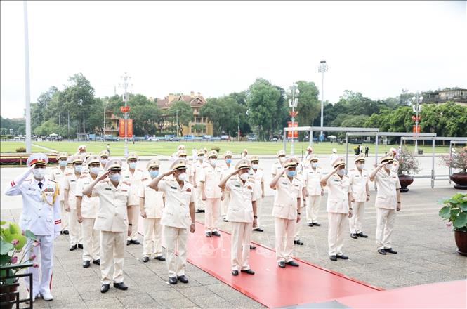 Đoàn đại biểu Đảng uỷ Công an Trung ương và Bộ Công an tưởng niệm Chủ tịch Hồ Chí Minh. Ảnh: Dương Giang/TTXVN