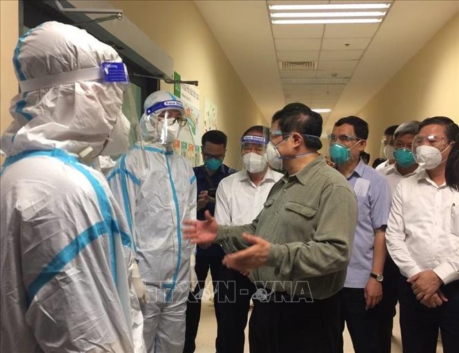 Thủ tướng Phạm Minh Chính thăm hỏi, động viện đội ngũ bác sỹ đang tham gia điều trị bệnh nhân mắc COVID-19 tại Bệnh viện dã chiến Hồi sức tích cực, Bệnh viện quốc tế Becamex tỉnh Bình Dương.
