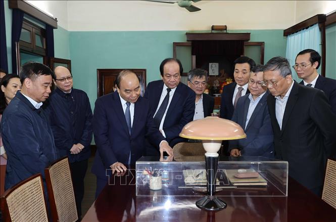 Thủ tướng Nguyễn Xuân Phúc tham quan nơi làm việc của Chủ tịch Hồ Chí Minh trong Nhà 67. Ảnh: Thống Nhất/TTXVN