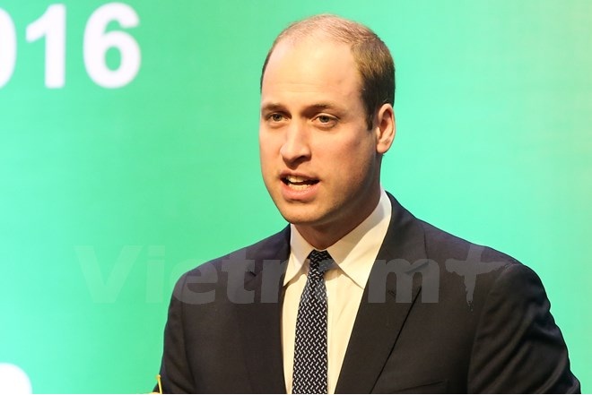 Hoàng tử William đã kêu gọi mọi người hãy hành động để bảo vệ tốt hơn nữa động vật quý hiếm bằng việc từ chối không sử dụng sừng tê giác. (Ảnh: Minh Sơn/Vietnam+)