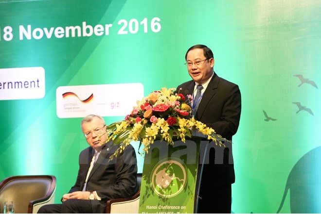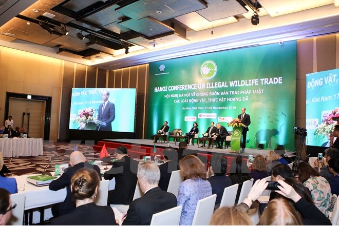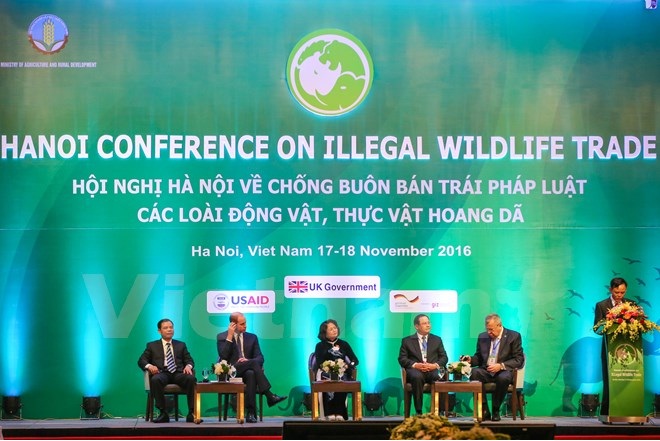 Hội nghị Hà Nội về phòng, chống buôn bán trái phép động vật, thực vật hoang dã do Bộ Nông nghiệp và Phát triển Nông thôn tổ chức, với sự hỗ trợ của chính phủ Anh. (Ảnh: Minh Sơn/Vietnam+)