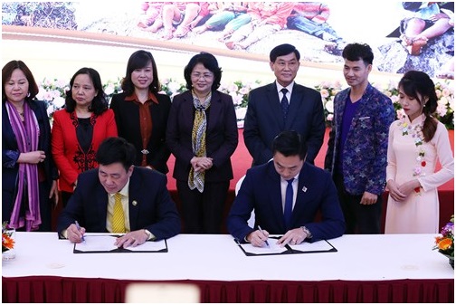 Ông Lê Khánh Trình, Chủ tịch Hội đồng Quản trị Tập đoàn Trường Tiền (bên phải) và ông Hoàng Văn Tiến, Giám đốc Quỹ BTTEVN (bên trái) ký kết thỏa thuận tài trợ với tổng giá trị 60 tỷ đồng trong thời gian 5 năm (2018-2022).