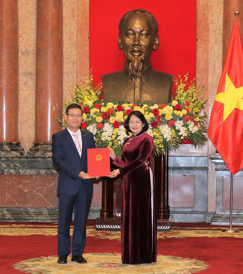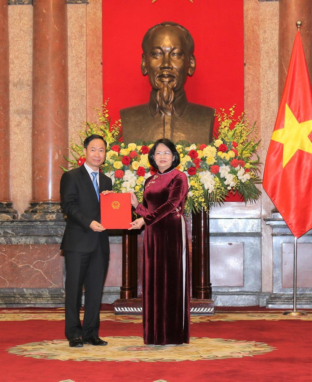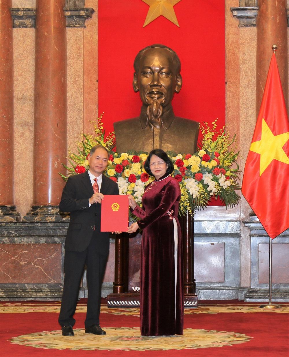 Phó Chủ tịch nước Đặng Thị Ngọc Thịnh trao Quyết định bổ nhiệm ông Phạm Việt Anh làm Đại sứ CHXHCN Việt Nam tại Vương quốc Hà Lan. (Ảnh: VPCTN/Công Gôn)