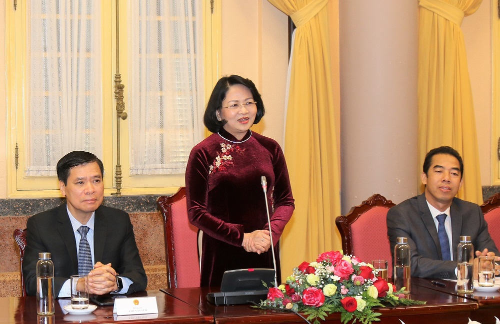 Các đồng chí Đại sứ vừa được bổ nhiệm là những người dày dạn kinh nghiệm đối ngoại, đã trải qua nhiều cương vị công tác. Phó Chủ tịch nước tin tưởng các Đại sứ sẽ hoàn thành xuất sắc nhiệm vụ được giao. Đồng thời với việc thực hiện nhiệm vụ chính trị, Phó Chủ tịch nước mong muốn các Đại sứ chú trọng xây dựng đoàn kết nội bộ, làm tốt công tác bảo vệ chính trị nội bộ, chú trọng đào tạo, rèn luyện cán bộ, nhất là cán bộ trẻ để bảo đảm sự nối tiếp, kế thừa.