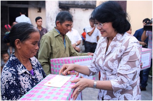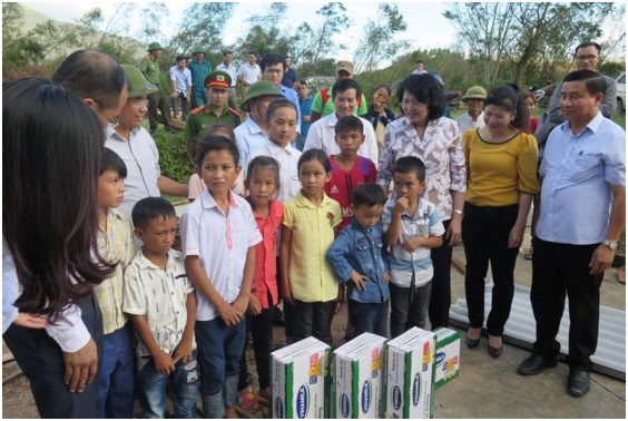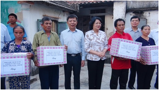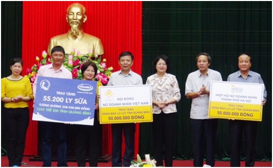 Phó Chủ tịch nước đã trao hỗ trợ tỉnh Quảng Bình 500 triệu đồng, Hiệp hội doanh nhân nữ Việt Nam trao hỗ trợ Quảng Bình 100 triệu đồng; Công ty Sữa Việt Nam Vinamilk tặng 55.200 ly sữa, trị giá hơn 300 triệu đồng.