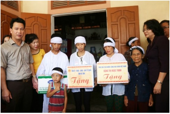 Sáng 26/9, Phó Chủ tịch nước Đặng Thị Ngọc Thịnh cùng đoàn công tác đã đến thăm hỏi, động viên và tặng quà cho gia đình anh Nguyễn Thu Lộc, 37 tuổi, Trưởng thôn Chi Lệ, xã Sơn Lộc, huyện Can Lộc, tỉnh Hà Tĩnh, người đã không may bị tử vong trong khi đang giúp dân khắc phục hậu quả bão số 10 vừa qua.