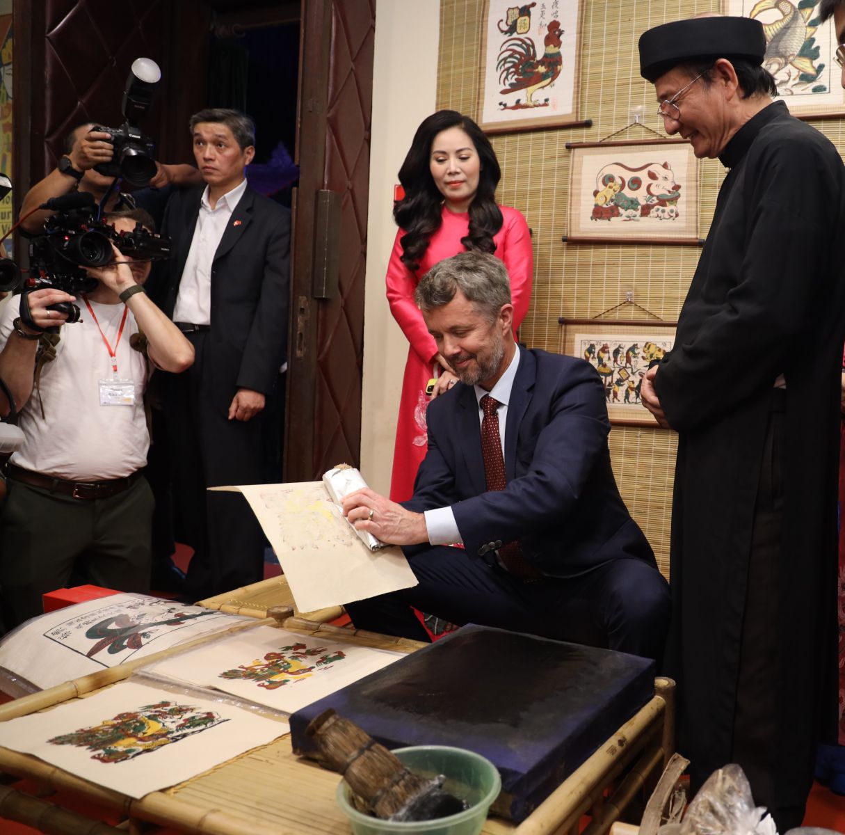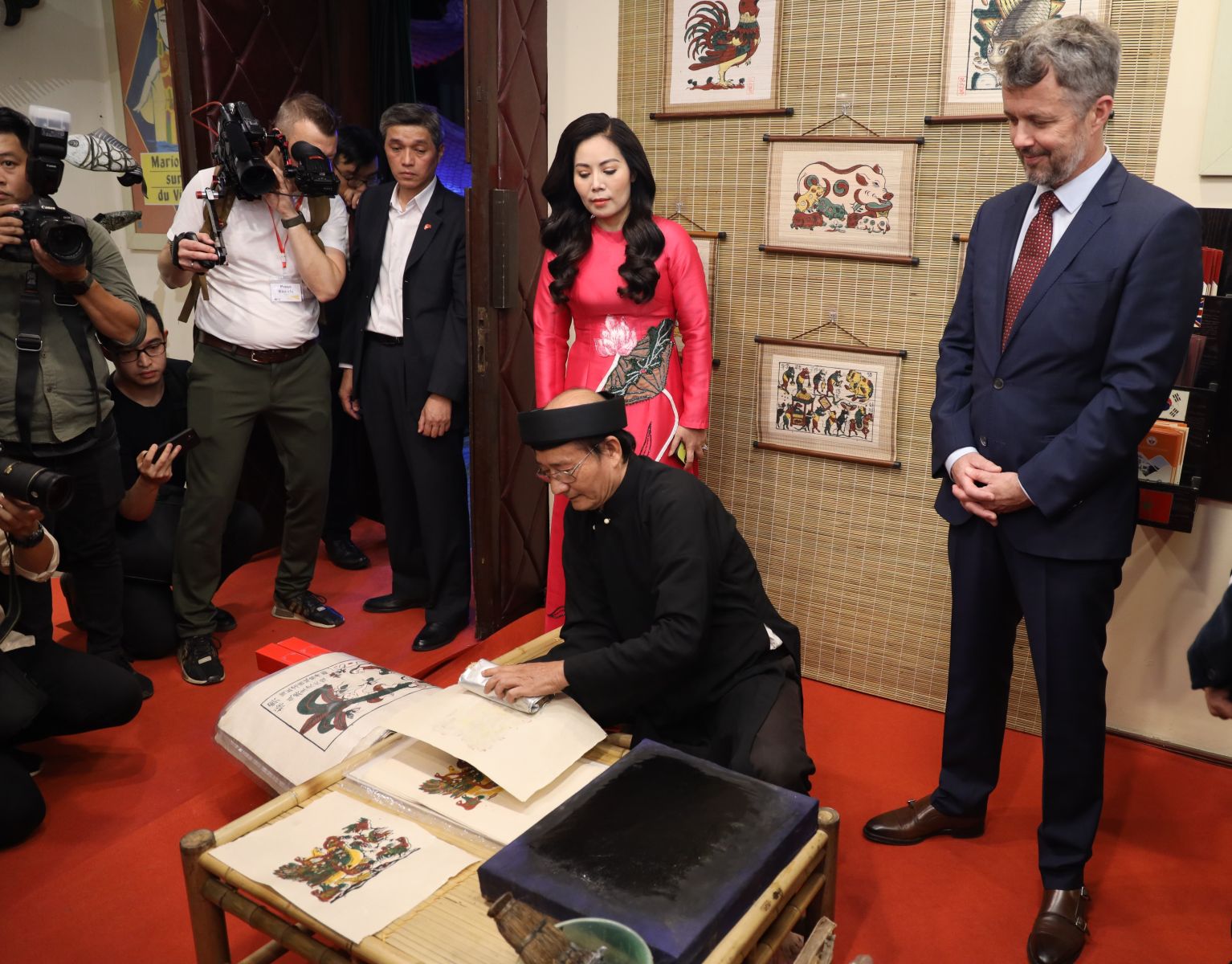 Thái tử Phờ-rê-đơ-rích làm thử tranh Đông Hồ. Ảnh: VPCTN