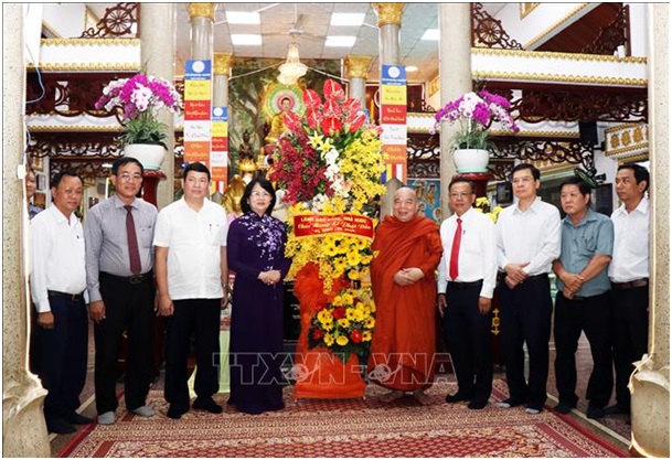 Thăm chùa Phổ Minh (Gò Vấp), Phó Chủ tịch nước Đặng Thị Ngọc Thịnh thay mặt lãnh đạo Đảng, Nhà nước chúc mừng Hòa thượng Thích Thiện Tâm, Phó Chủ tịch Hội đồng Trị sự Giáo hội Phật giáo Việt Nam và các tăng, ni, phật tử nhân dịp Lễ Phật đản 2019.