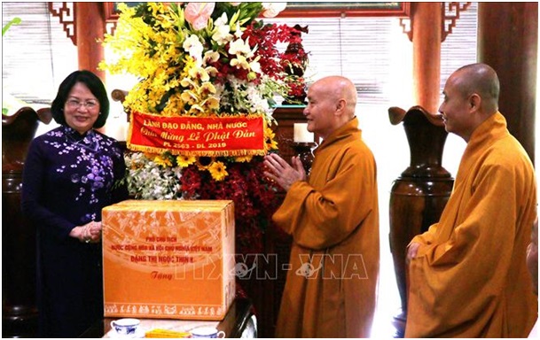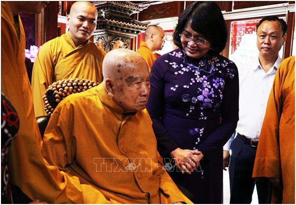 Nhân Đại lễ Phật đản - Phật lịch 2563, dương lịch 2019, sáng 7/5, Phó Chủ tịch nước Đặng Thị Ngọc Thịnh đến thăm, chúc mừng Hòa thượng Thích Thanh Từ - Phó Pháp chủ Hội đồng Chứng minh Giáo hội Phật giáo Việt Nam, tại Thiền viện Thường Chiếu, xã Phước Thái, huyện Long Thành, tỉnh Đồng Nai.