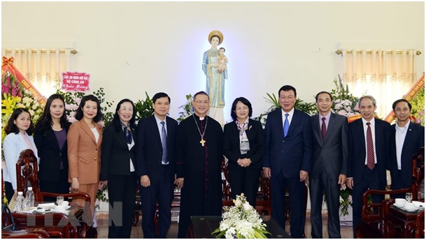 Thay mặt lãnh đạo Đảng, Nhà nước, Mặt trận Tổ quốc Việt Nam, Phó Chủ tịch nước chúc mừng Giám mục Giáo phận Bùi Chu Vũ Đình Hiệu và các chức sắc, tu sỹ, đồng bào Công giáo đón mùa Giáng sinh, năm mới an lành, hạnh phúc.