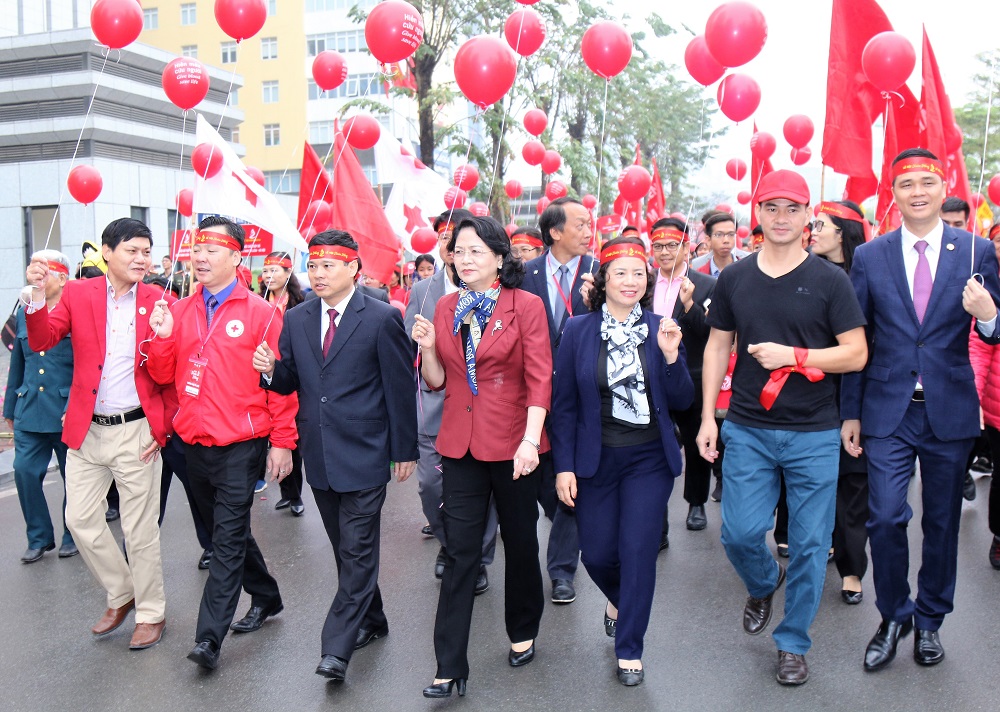 Phó Chủ tịch nước Đặng Thị Ngọc Thịnh tham gia Chương trình đi bộ cổ động hiến máu. (Ảnh: Công Gôn/VPCTN)