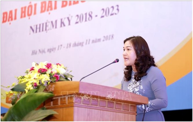 Thứ trưởng Bộ Lao động - Thương binh và Xã hội Nguyễn Thị Hà phát biểu tại Đại hội. Ảnh: Anh Tuấn/TTXVN