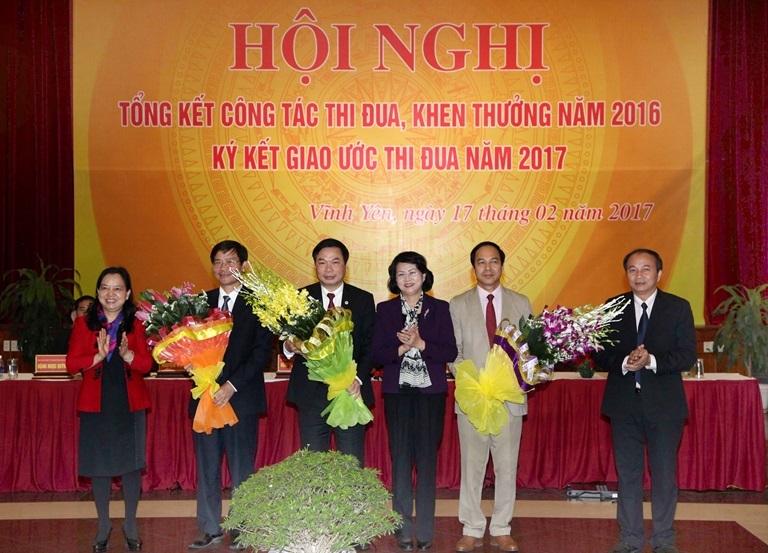 Tại Hội nghị, tỉnh Vĩnh Phúc được suy tôn nhận cờ thi đua dẫn đầu Cụm thi đua các tỉnh Đồng bằng Sông Hồng. Đại diện lãnh đạo 9 tỉnh đã ký giao ước thi đua, tỉnh Ninh Bình được suy tôn làm Cụm trưởng Cụm thi đua các tỉnh Đồng bằng Sông Hồng năm 2017. Cũng tại Hội nghị, 7 tập thể và 14 cá nhân thuộc 9 tỉnh trong Cụm đã nhận Bằng khen của Tỉnh Vĩnh phúc vì đã có thành tích xuất sắc trong công tác thi đua khen thưởng Cụm Thi đua Đồng bằng Sông Hồng năm 2016./.