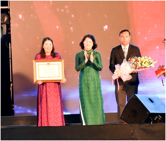 Đồng chí Đặng Thị Ngọc Thịnh, Phó Chủ tịch nước trao Huân chương Lao động hạng Ba cho Ban quản lý di tích Côn Đảo. (Ảnh: Báo Bà Rịa - Vũng Tàu)