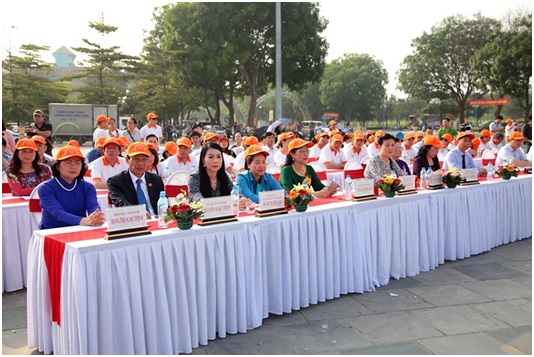 Phó Chủ tịch nước Đặng Thị Ngọc Thịnh (ngoài cùng bên trái) dự buổi Lễ. (Ảnh: Báo Vĩnh Phúc)