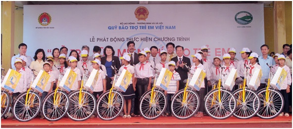 Quỹ Bảo trợ trẻ em Việt Nam tặng 30 xe đạp cho học sinh Trường THCS Nghĩa Phương.