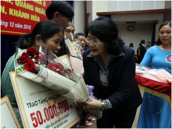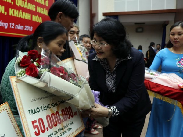 Tại buổi lễ, Phó Chủ tịch nước Đặng Thị Ngọc Thịnh đã trao tượng trưng cho các hộ gia đình khó khăn ở tỉnh Quảng Nam, mỗi hộ 50.000 triệu đồng; mong muốn với số tiền hỗ trợ, các hộ gia đình nhanh chóng xây nhà ở, chuẩn bị đón Tết cổ truyền của dân tộc.