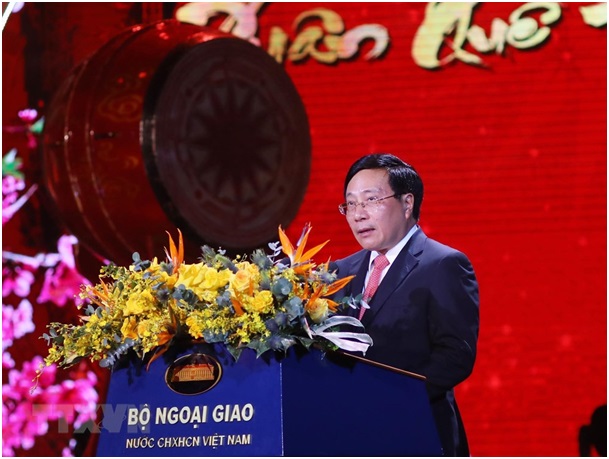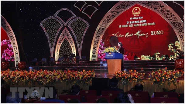Phát biểu khai mạc chương trình, Ủy viên Bộ Chính trị, Phó Thủ tướng, Bộ trưởng Bộ Ngoại giao Phạm Bình Minh khẳng định, những thành tựu to lớn, toàn diện trên các lĩnh vực trong năm 2019 làm cho mỗi người Việt Nam dù ở nơi đâu cũng đều tự hào về tiềm lực ngày càng được củng cố của quốc gia, vị thế của Việt Nam ngày càng được nâng cao. Những thành tựu này có phần đóng góp quý báu về trí tuệ, vật chất và tinh thần của cộng đồng kiều bào trên tất cả năm châu.