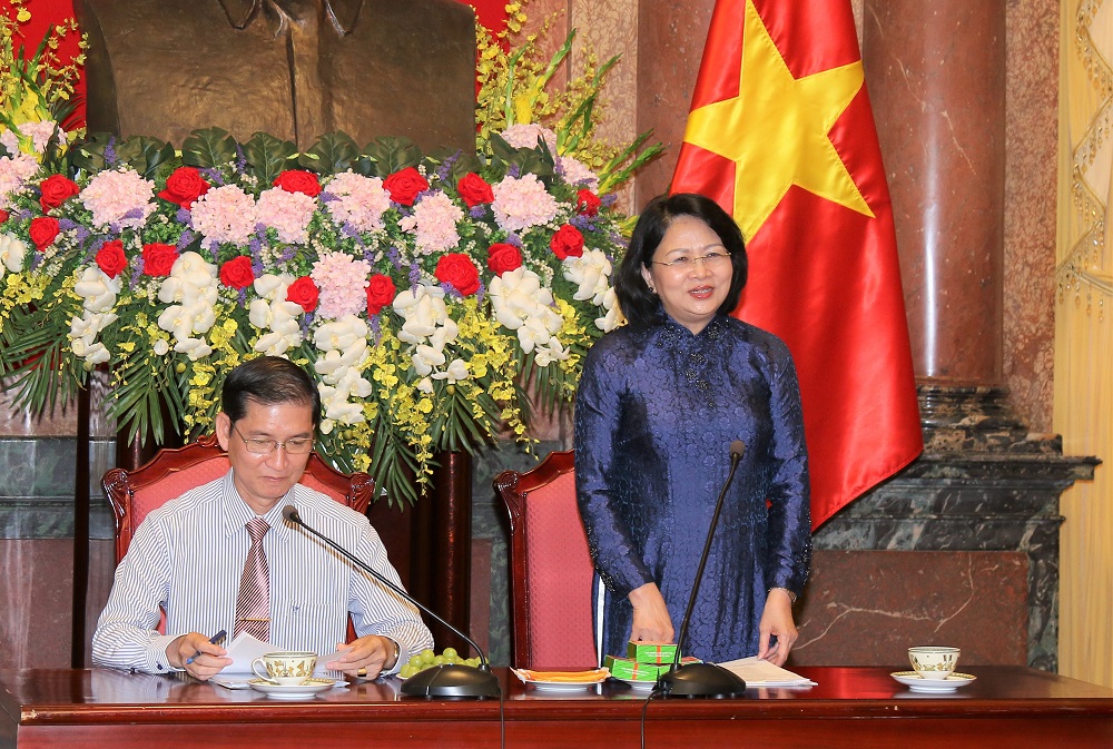 Phó Chủ tịch nước Đặng Thị Ngọc Thịnh với các đại biểu dự cuộc gặp mặt. (Ảnh: VPCTN/Công Gôn)