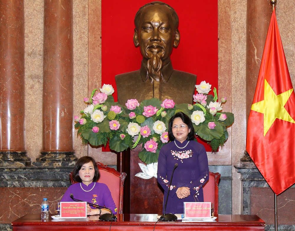 Thay mặt lãnh đạo Đảng, Nhà nước, Phó Chủ tịch nước Đặng Thị Ngọc Thịnh biểu dương và chúc mừng những thành tựu mà Đảng bộ, chính quyền và nhân dân tỉnh Ninh Bình đã nỗ lực đạt được trên tất cả các lĩnh vực trong thời gian qua, trong đó có đóng góp tích cực của các đại biểu dự cuộc gặp mặt hôm nay. Các vị đại biểu ở cương vị nào cũng đều tích cực tuyên truyền, vận động đồng bào thực hiện tốt chủ trương, đường lối của Đảng, chính sách, pháp luật của Nhà nước; hăng hái thi đua xây dựng nông thôn mới, giúp nhau phát triển sản xuất; tham gia phòng, chống tội phạm; bảo vệ môi trường sinh thái… Những cố gắng đó đã góp phần cùng toàn Đảng, toàn dân đưa đất nước phát triển về mọi mặt, giữ vững ổn định chính trị, xã hội, bảo đảm Quốc phòng - An ninh, thực hiện tốt chính sách đối với người có công với cách mạng và an sinh xã hội, đẩy mạnh hội nhập quốc tế.