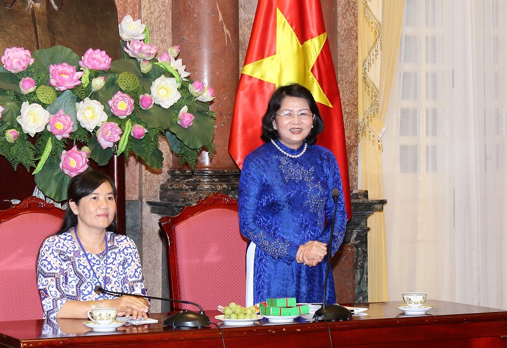 Phó Chủ tịch nước Đặng Thị Ngọc Thịnh phát biểu tại buổi gặp mặt. (Ảnh: VPCTN/Công Gôn)