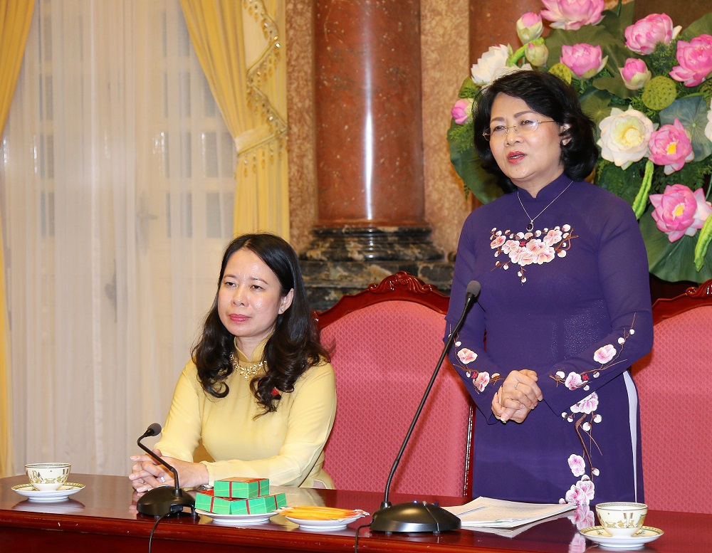 Phó Chủ tịch nước Đặng Thị Ngọc Thịnh phát biểu tại cuộc gặp mặt. (Ảnh: VPCTN)