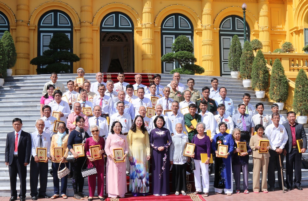 Phó Chủ tịch nước Đặng Thị Ngọc Thịnh với các đại biểu người có công tỉnh An Giang. (Ảnh: VPCTN)