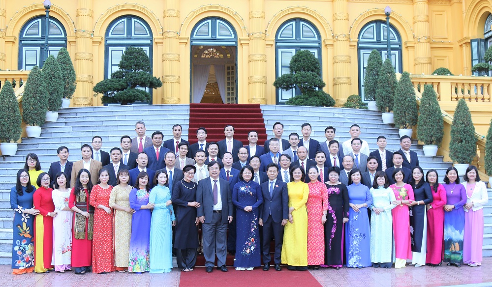 Phó Chủ tịch nước Đặng Thị Ngọc Thịnh với các đại biểu dự cuộc gặp mặt. (Ảnh: VPCTN/Công Gôn)
