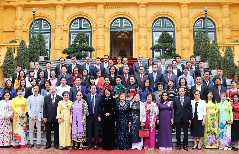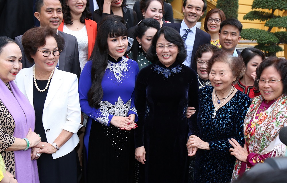 Phó Chủ tịch nước, Chủ tịch Hội đồng bảo trợ Quỹ Bảo trợ trẻ em Việt Nam Đặng Thị Ngọc Thịnh với các đại biểu dự cuộc gặp mặt. (Ảnh:VPCTN/Công Gôn)