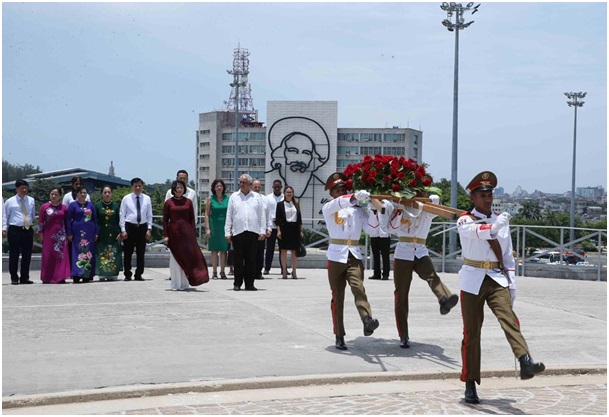 Cũng trong ngày 8/7, đoàn đã đến đặt vòng hoa tại Tượng đài Chủ tịch Hồ Chí Minh và Đài tưởng niệm Anh hùng dân tộc Cuba Hose Martin; thăm Đại sứ quán Việt Nam tại Cuba, nói chuyện với cán bộ nhân viên Đại sứ quán và đại diện cộng đồng người Việt tại Cuba./.
