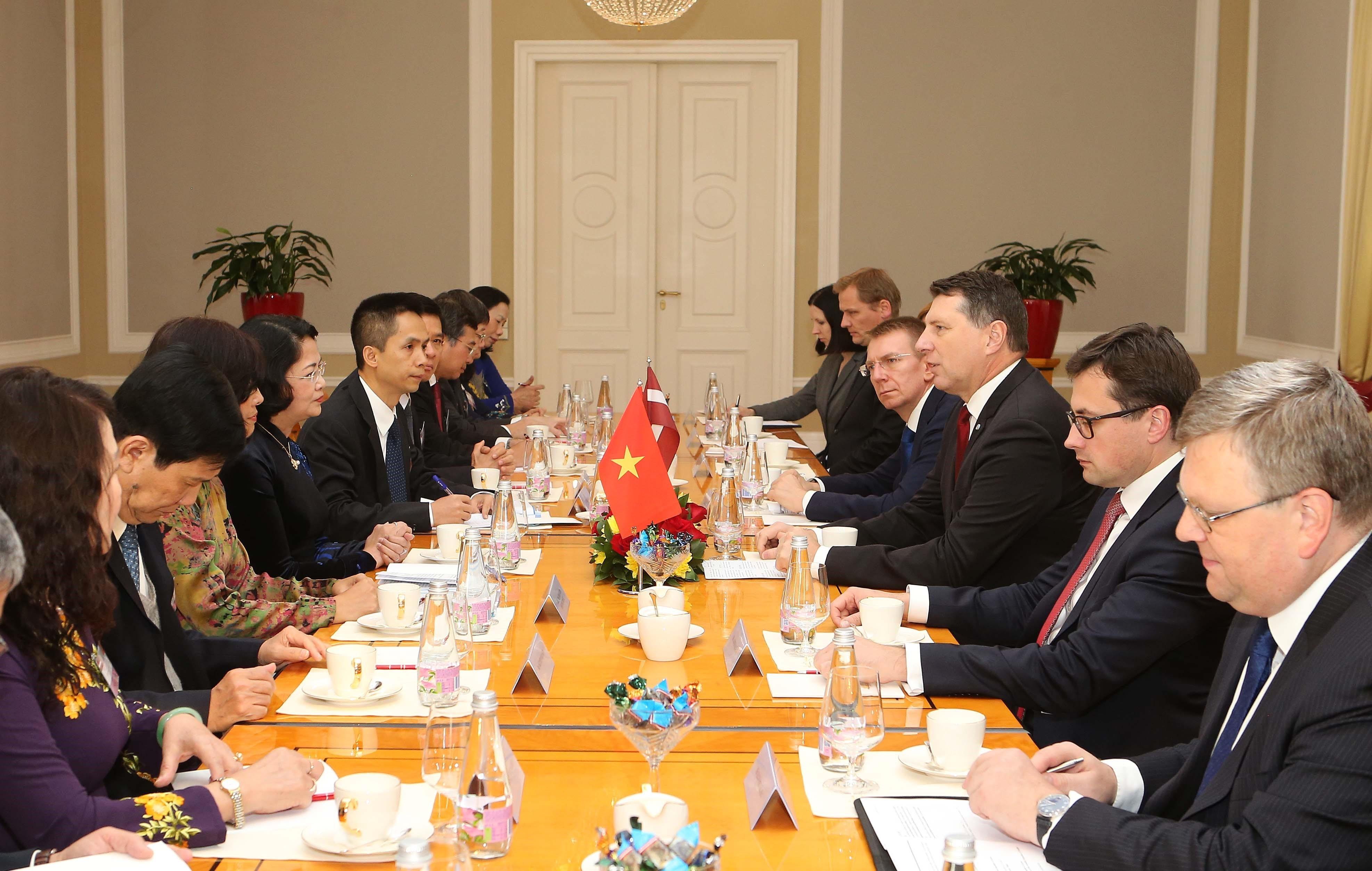Tại cuộc gặp, Phó Chủ tịch nước Đặng Thị Ngọc Thịnh đánh giá cao những bước phát triển tích cực trong quan hệ hữu nghị truyền thống và hợp tác nhiều mặt giữa Việt Nam và Latvia thời gian qua, nhất là hợp tác kinh tế-thương mại. Việt Nam đã trở thành bạn hàng thương mại lớn nhất của Latvia tại Đông Nam Á với kim ngạch hai chiều năm 2016 đạt 161 triệu USD, tăng 10% so với năm 2015 và tăng 10 lần kể từ năm 2010; 9 tháng đầu năm 2017, kim ngạch hai chiều cũng đã đạt 126 triệu USD, tăng 10% so với cùng kỳ năm ngoái.