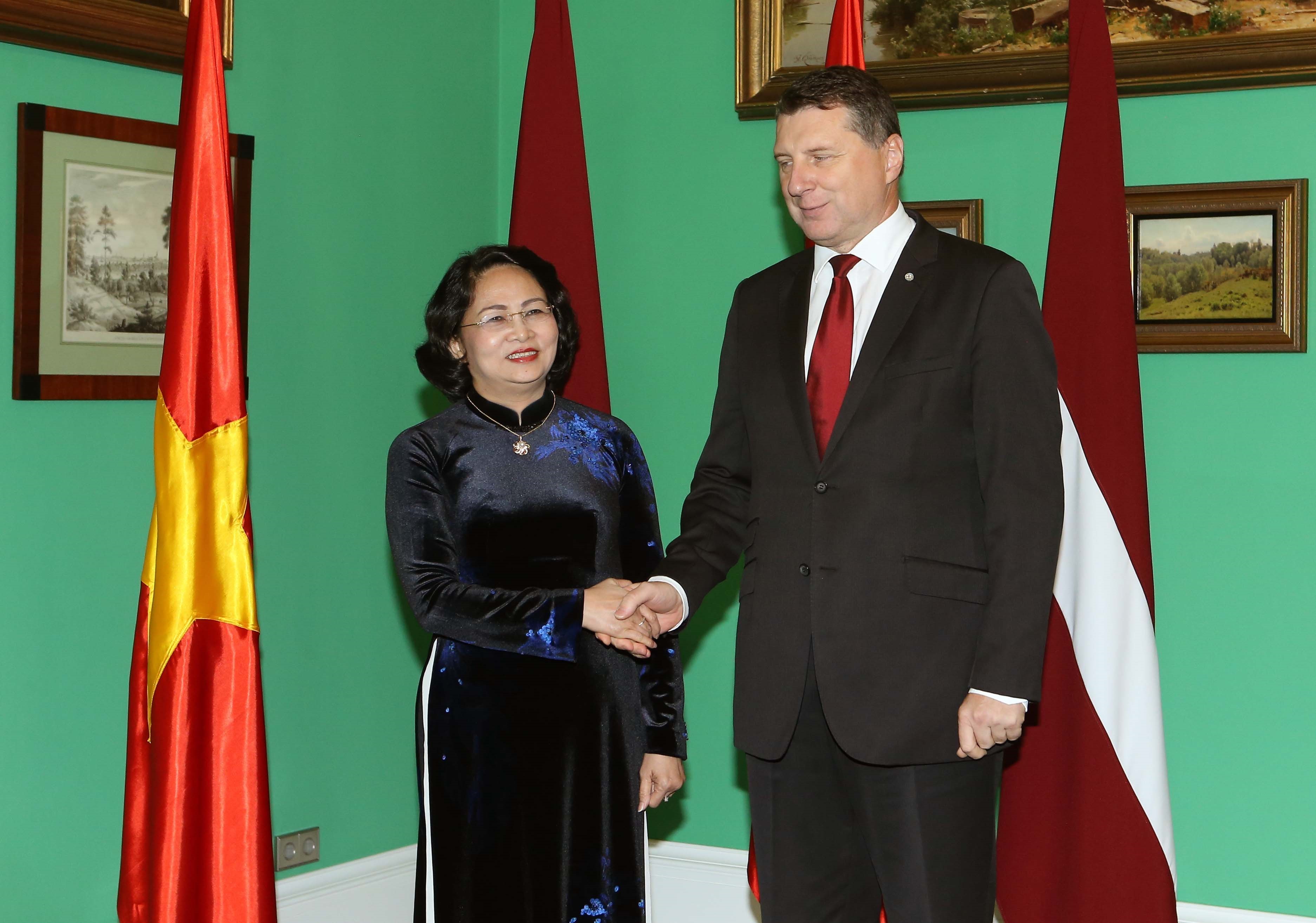 Để đẩy mạnh hơn nữa quan hệ hợp tác nhiều mặt giữa Việt Nam và Latvia, Phó Chủ tịch nước đã đề nghị hai bên sớm ký Hiệp định miễn thị thực cho người mang hộ chiếu ngoại giao; và nêu các biện pháp hợp tác trong các lĩnh vực chính trị-ngoại giao, thương mại-đầu tư, giáo dục-đào tạo, quốc phòng-an ninh, lãnh sự… Nhân dịp này, Phó Chủ tịch nước đã trân trọng chuyển lời mời của Chủ tịch nước Trần Đại Quang mời Tổng thống Latvia sang thăm Việt Nam trong thời gian sớm nhất.
