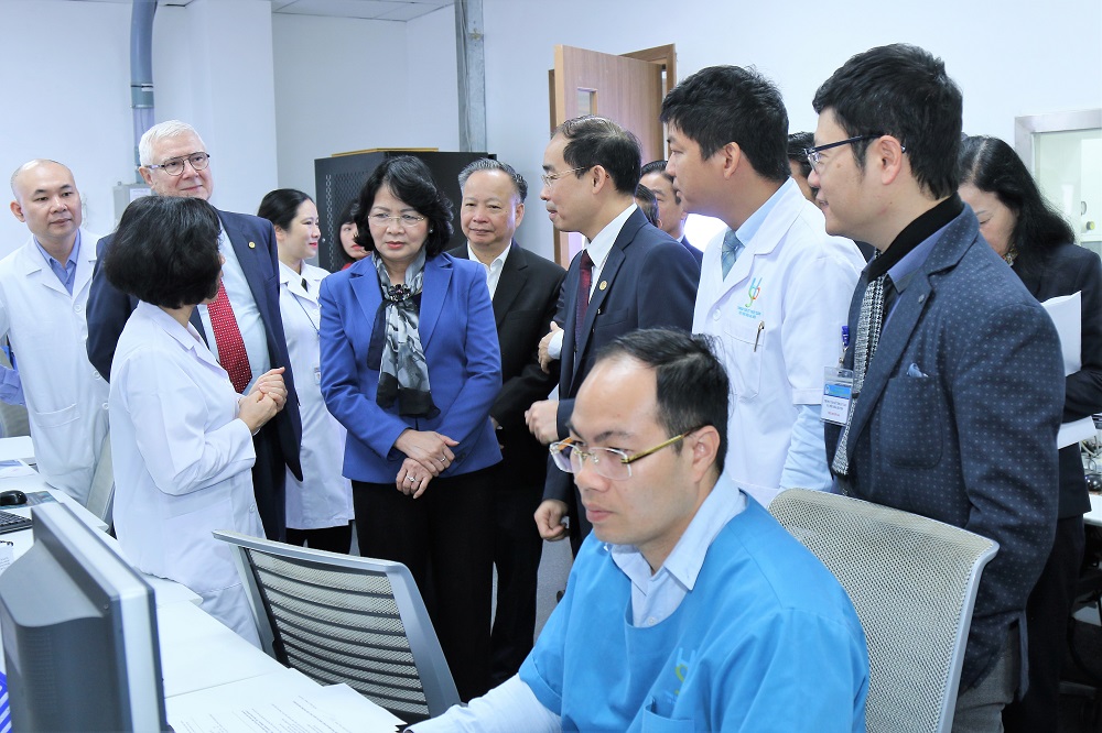 Phó Chủ tịch nước Đặng Thị Ngọc Thịnh thăm Trung tâm kỹ thuật cao, Bệnh viện đa khoa Xanh Pôn. (Công Gôn/ VPCTN)