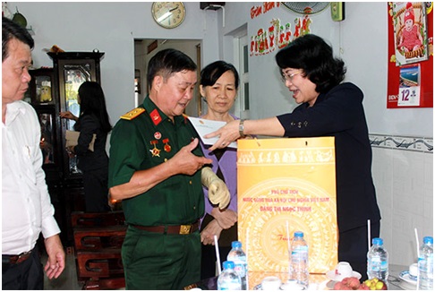 Chiều 12-7, Phó chủ tịch nước Đặng Thị Ngọc Thịnh và lãnh đạo tỉnh Đồng Nai đã đến thăm, tặng quà gia đình thương binh hạng ¼ Nguyễn Văn Tường (thương tật 91%, ngụ KP4, phường Tân Phong, TP.Biên Hòa) và gia đình Tiến sĩ Huỳnh Văn Tâm (ấp Thới Sơn, xã Bình Hòa, huyện Vĩnh Cửu) có 3 đời là liệt sĩ và 2 đời là Mẹ Việt Nam anh hùng.