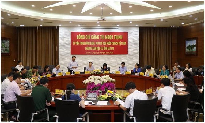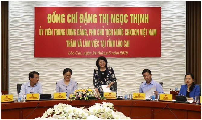 Tại buổi làm việc, Phó Chủ tịch nước Đặng Thị Ngọc Thịnh lưu ý tỉnh Lào Cai cần tiếp tục khắc phục những tồn tại, hạn chế trong công tác giảm nghèo bền vững, tránh tình trạng năm trước xóa nghèo, năm sau lại tái nghèo; tiếp tục giữ vững vai trò là đơn vị dẫn đầu phong trào thi đua trong khu vực; thực hiện tốt các mục tiêu kinh tế, chính trị, xã hội đã đặt ra trong năm 2019; tập trung xây dựng nông thôn mới, phát huy bản sắc văn hóa dân tộc để phát triển du lịch; tạo điều kiện cho doanh nghiệp phát triển và hội nhập; tăng cường sắp xếp, kiện toàn bộ máy tổ chức.