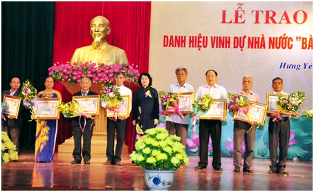 * Tiếp tục chương trình công tác, thay mặt lãnh đạo Đảng, Nhà nước, Phó chủ tịch nước Đặng Thị Ngọc Thịnh đã đến dự Lễ trao bằng truy tặng danh hiệu vinh dự Nhà nước “Bà mẹ Việt Nam Anh hùng” cho 117 Bà mẹ trong tỉnh. Đây là đợt thứ 3 tỉnh tổ chức trao tặng danh hiệu Bà mẹ Việt Nam Anh hùng. Trong các cuộc kháng chiến của dân tộc dưới sự lãnh đạo của Đảng, tỉnh Hưng Yên đã có trên 2000 Bà mẹ được phong tặng Danh hiệu vinh dự này.
