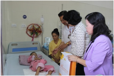 Phó Chủ tịch nước Đặng Thị Ngọc Thịnh tặng quà, thăm hỏi một bệnh nhi ung thư đang điều trị