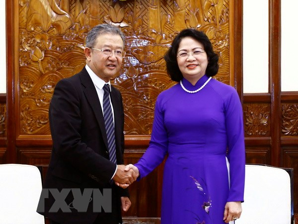 Phó Chủ tịch nước Đặng Thị Ngọc Thịnh tiếp ông Ng Keng Hooi, Chủ tịch, kiêm Tổng Giám đốc điều hành Tập đoàn Bảo hiểm nhân thọ AIA. (Ảnh: An Đăng/TTXVN)