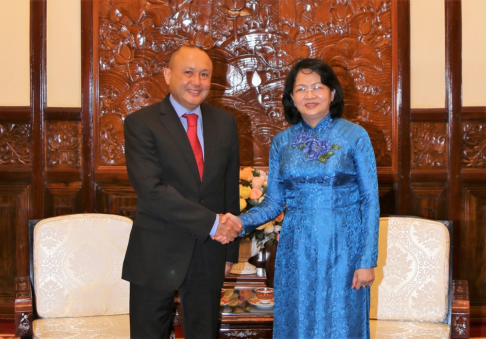 Chiều 28-5-2019, tại Phủ Chủ tịch, Phó Chủ tịch nước Đặng Thị Ngọc Thịnh đã tiếp Đại sứ Cộng hòa Kazakhstan Beketzhan Zhumakhanov đến chào từ biệt nhân dịp kết thúc nhiệm kỳ công tác tại Việt Nam.