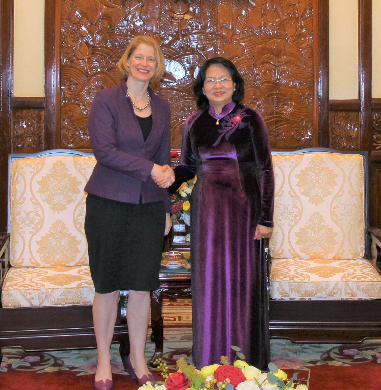 Phó Chủ tịch nước chúc mừng bà Wendy Matthews đã hoàn thành xuất sắc nhiệm kỳ công tác tại Việt Nam.