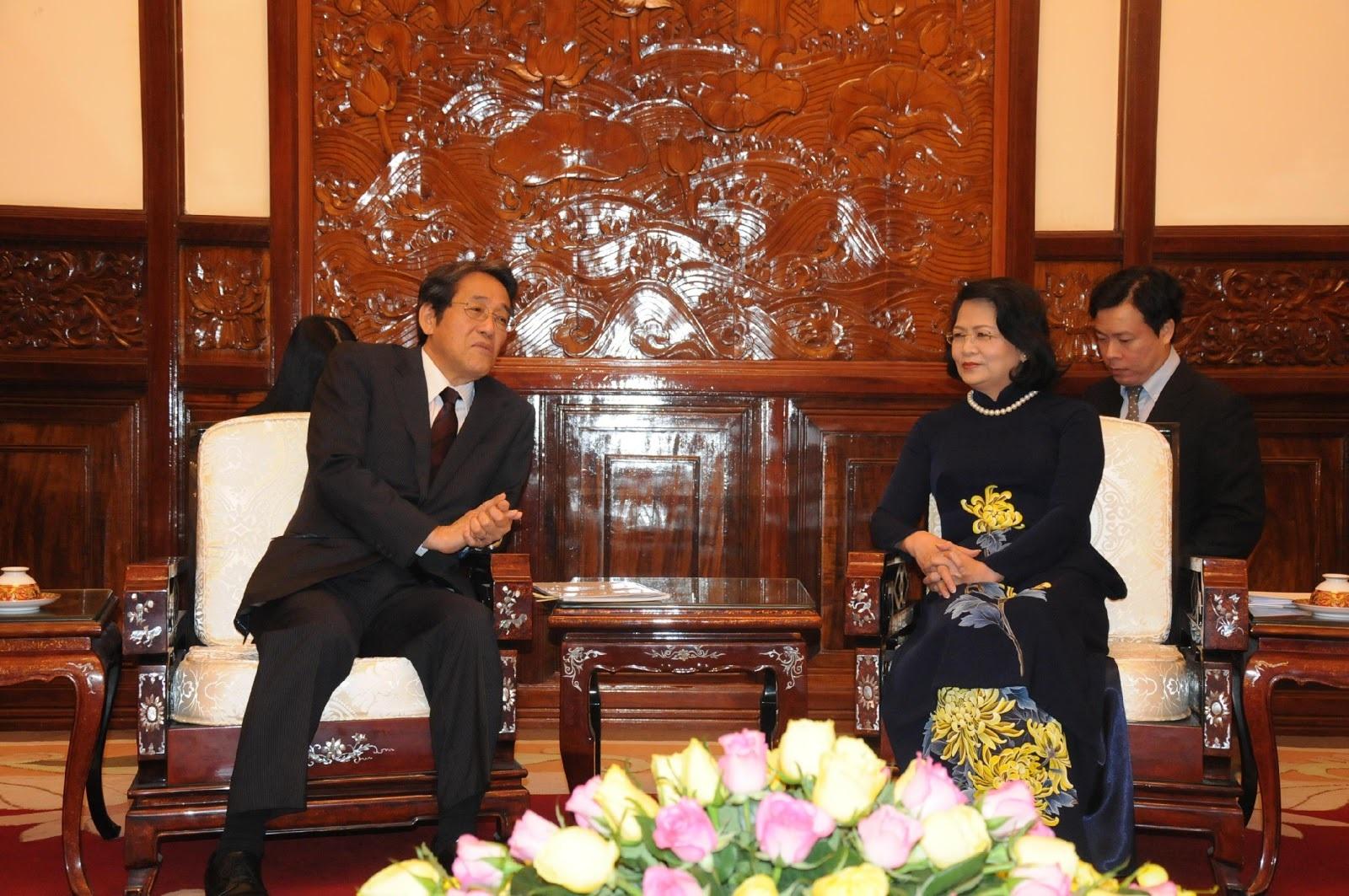 Nhân dịp này, Phó Chủ tịch nước cũng thông báo về chuyến thăm của Bà tới Nhật Bản vào thời gian tới; mong rằng Đại sứ và các cơ quan hữu quan của Nhật Bản tạo điều kiện để chuyến thăm thành công tốt đẹp; Phó Chủ tịch nước cũng gửi lời cảm ơn tới Chính phủ và nhân dân Nhật Bản vì sự giúp đỡ Việt Nam thời gian qua.