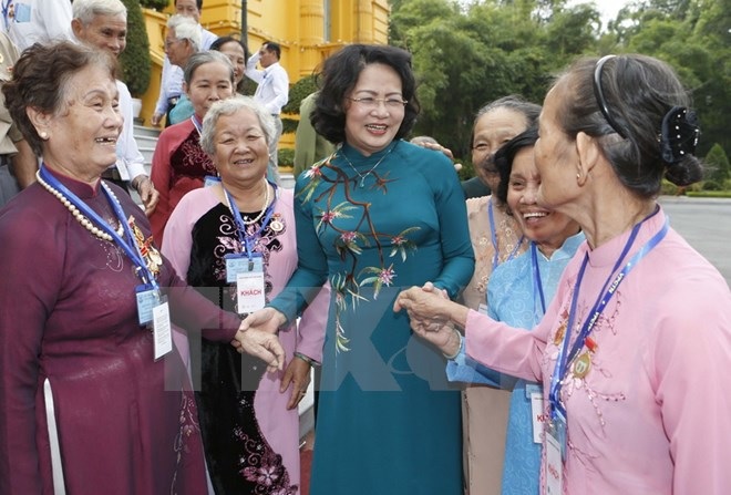 Phó Chủ tịch nước Đặng Thị Ngọc Thịnh với các đại biểu. (Ảnh: Doãn Tấn/TTXVN)