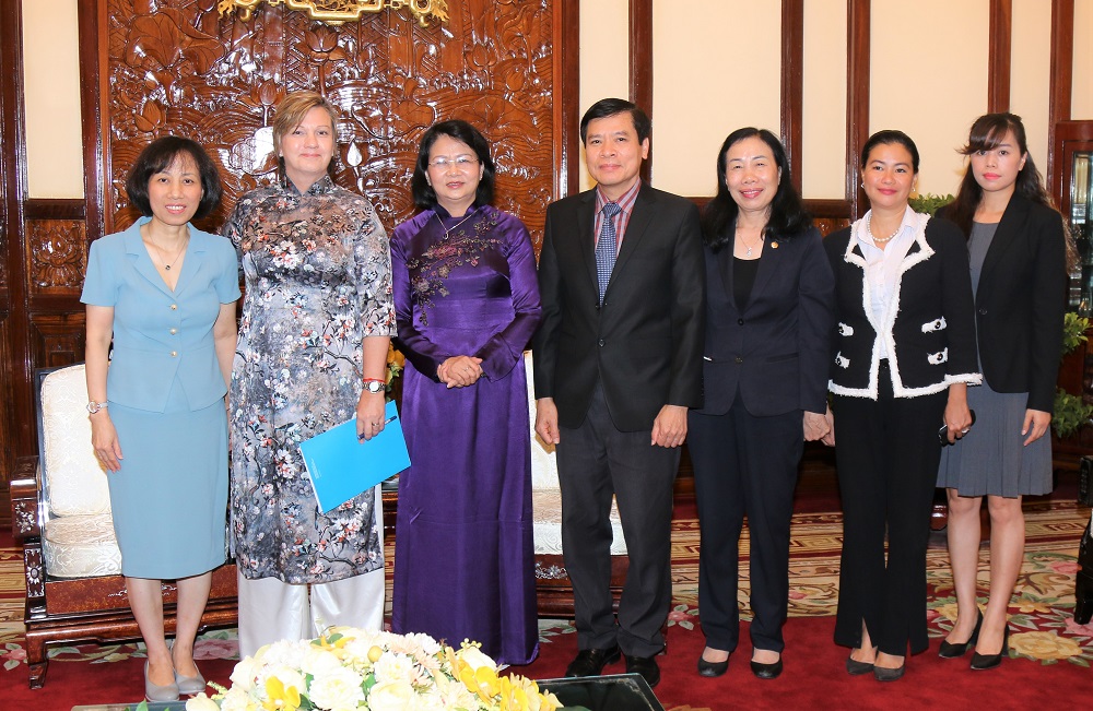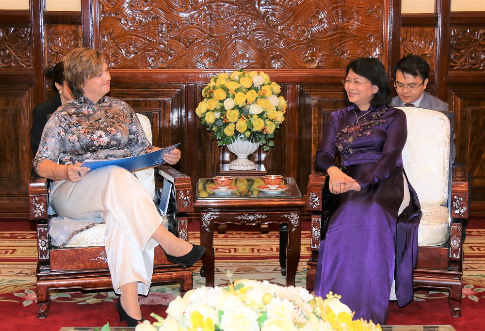 Chiều 19-9-2019, tại Phủ Chủ tịch, Phó Chủ tịch nước Đặng Thị Ngọc Thịnh đã tiếp Trưởng đại diện Quỹ Nhi đồng Liên Hợp Quốc (UNICEF) tại Việt Nam Rana Jane Flowers. Dự buổi tiếp có Phó Chủ nhiệm Văn phòng Chủ tịch nước Chu Văn Yêm.